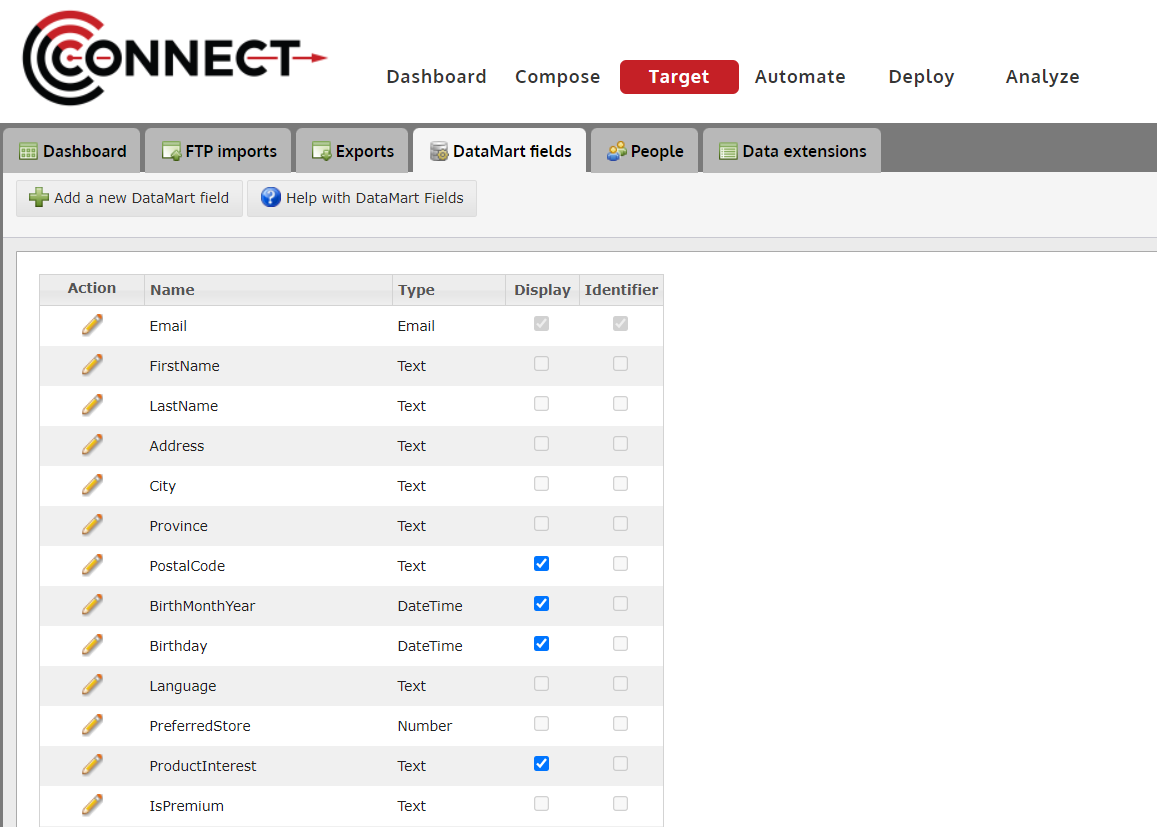 - Currently, CONNECT supports only 1 email field in your database. If you have any other email address fields, they will need to be entered as text fields and cannot be used for deployment.